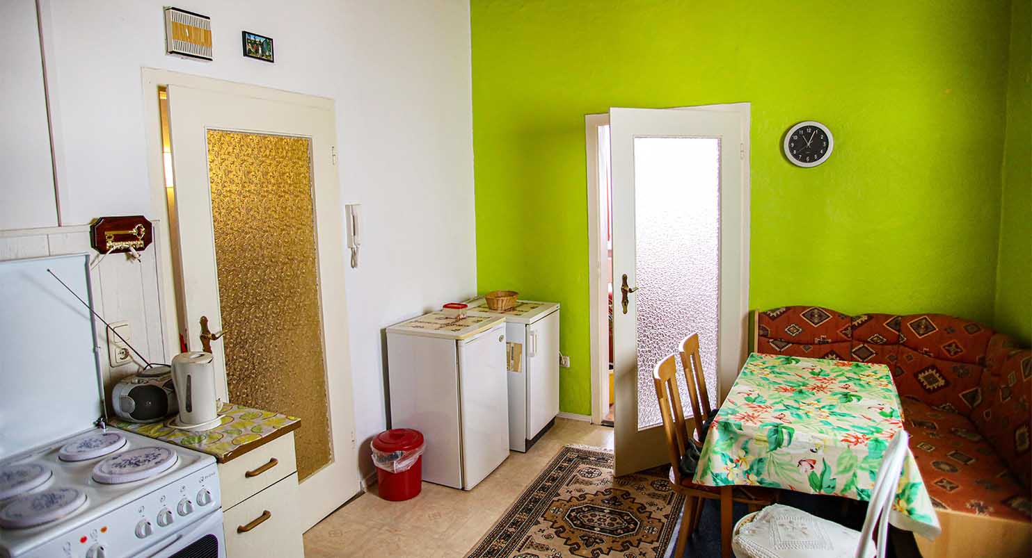 - Massivbauweise, Putzfassade, Dach mit Bitumenschweißbahn, Kunststofffenster
