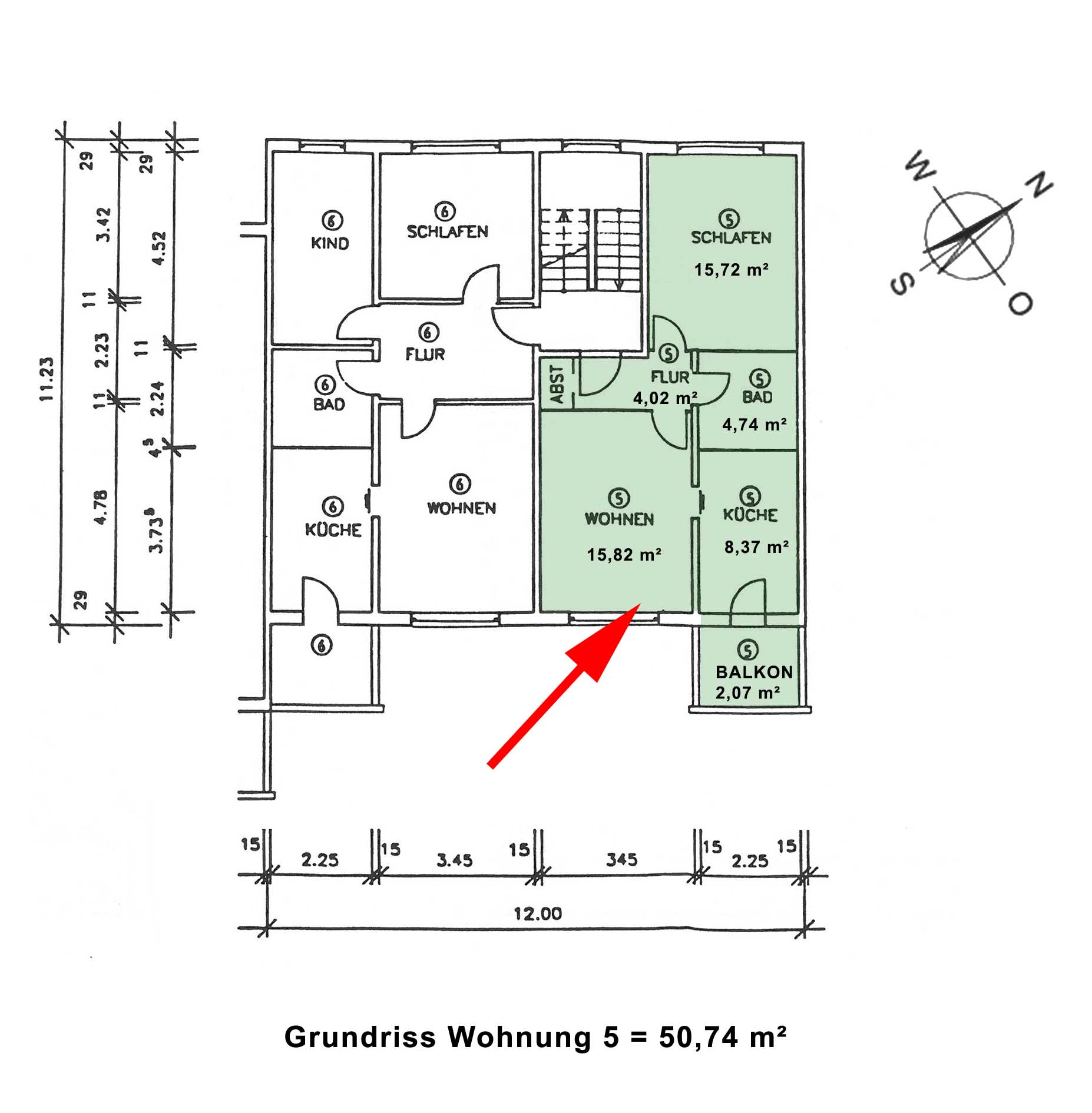 - schöner Ausblick vom Südbalkon in gepflegte Umgebung