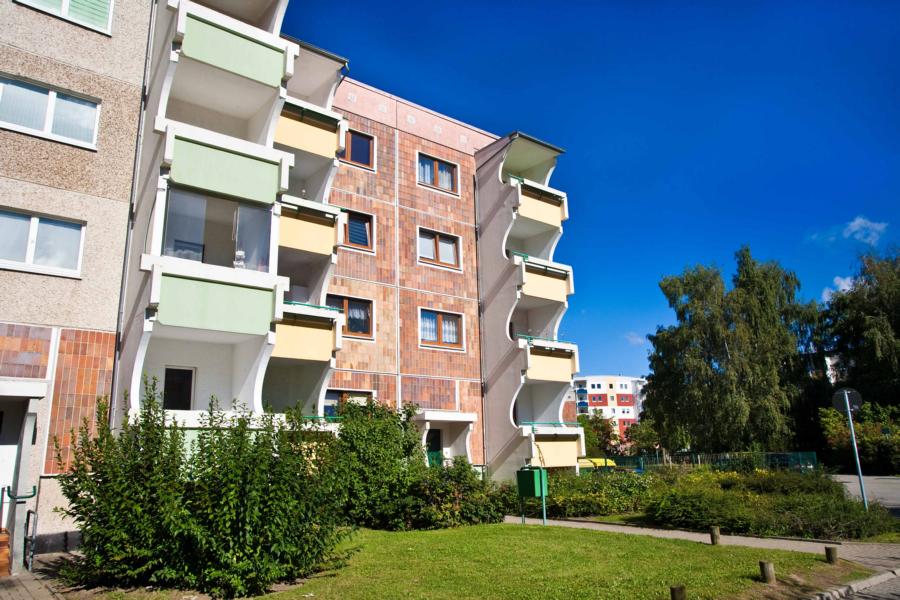 - Plattenbauweise, Dämmung, Putzfassade, Flachdach